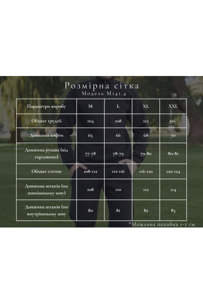 Цей чоловічий костюм на начосі поєднує стиль та тепло, створюючи ідеальний вибір для прохолодних днів. Комплект включає прямі штани з кишенями на застібці та кофту з оригінальним кроєм під горло. Манжети на рукавах забезпечують комфортну посадку та захищають від вітру.